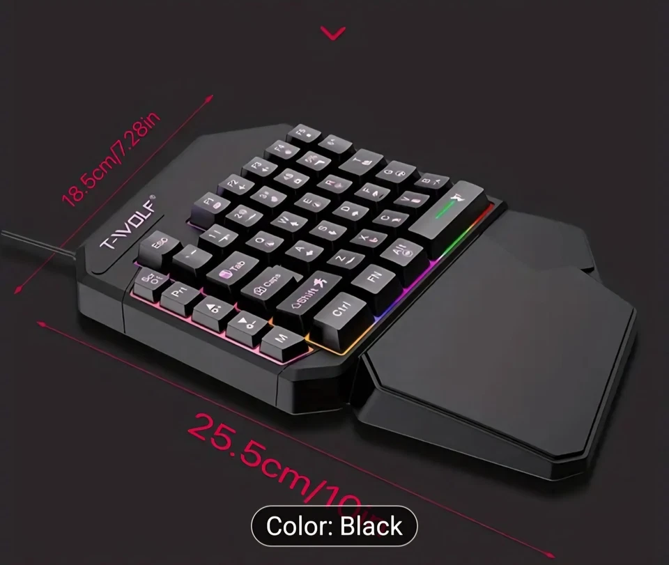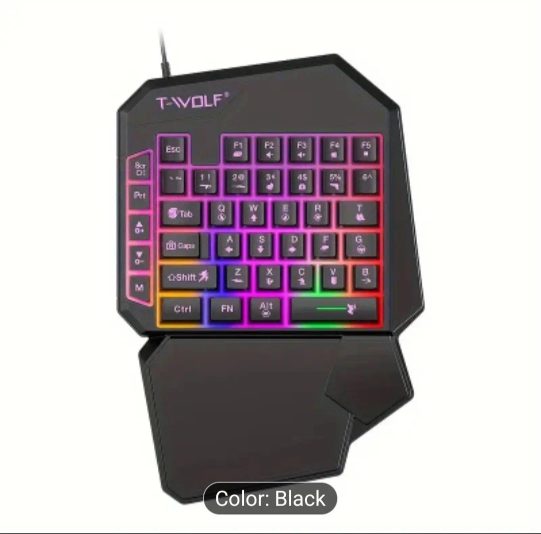 Take your gaming to the next level with the T-Wolf One-Handed RGB USB Gaming Keyboard with Palm Rest, designed for precision, comfort, and speed. Perfect for professional gamers, streamers, and esports enthusiasts, this compact gaming keypad gives you full control over your in-game actions without the bulk of a traditional keyboard.